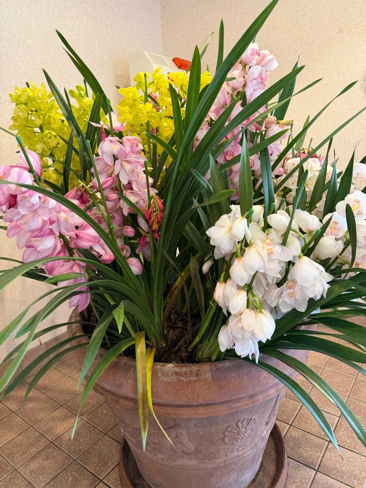 お花屋さんが届けてるのを見たので、頼んでるのかな?シンビジウムは豪華でした☺️