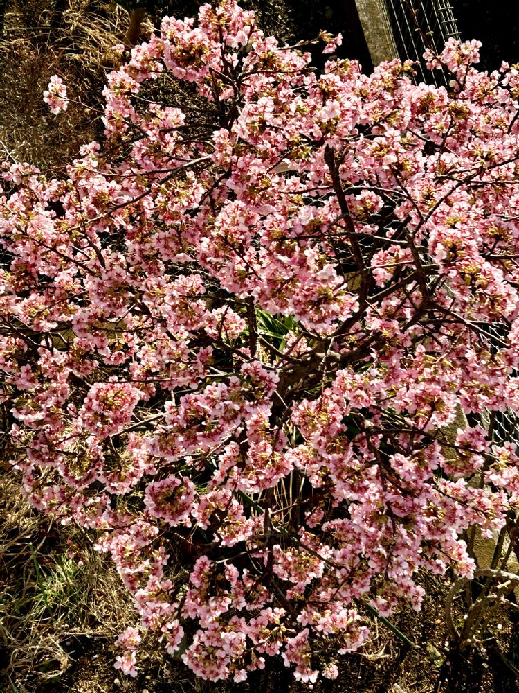 昨年春にご近所さんから頂いた桜の鉢植え。キレイに設えてあるステキな鉢です 初めての冬越しにドキドキ。 (サトザクラと聞いていましたが、河津桜のようです🌸)