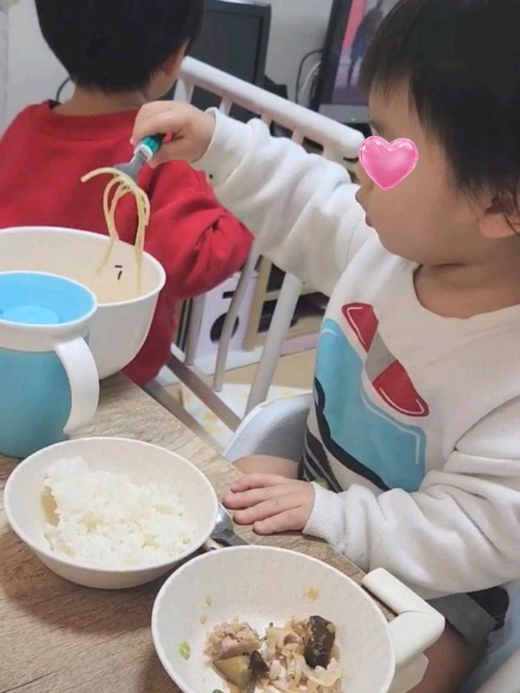 3️⃣🧒お兄ちゃんのスパゲッティ🍝を👶弟が奪ってます😅😲😋