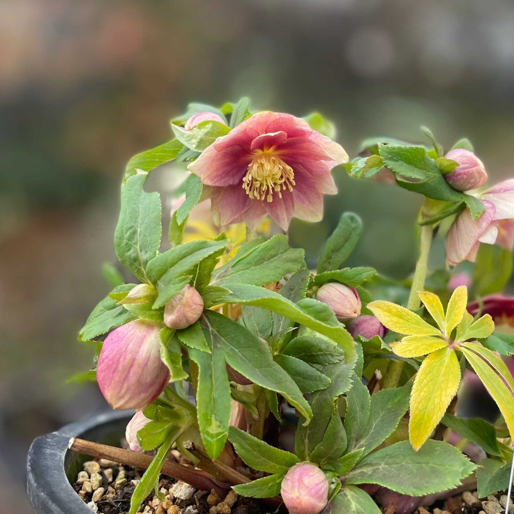 土はプロトリーフのクリスマスローズの土に鹿沼土、ベラボン(椰子の繊維)を目分量で混ぜて、水捌けをよくしてます。
