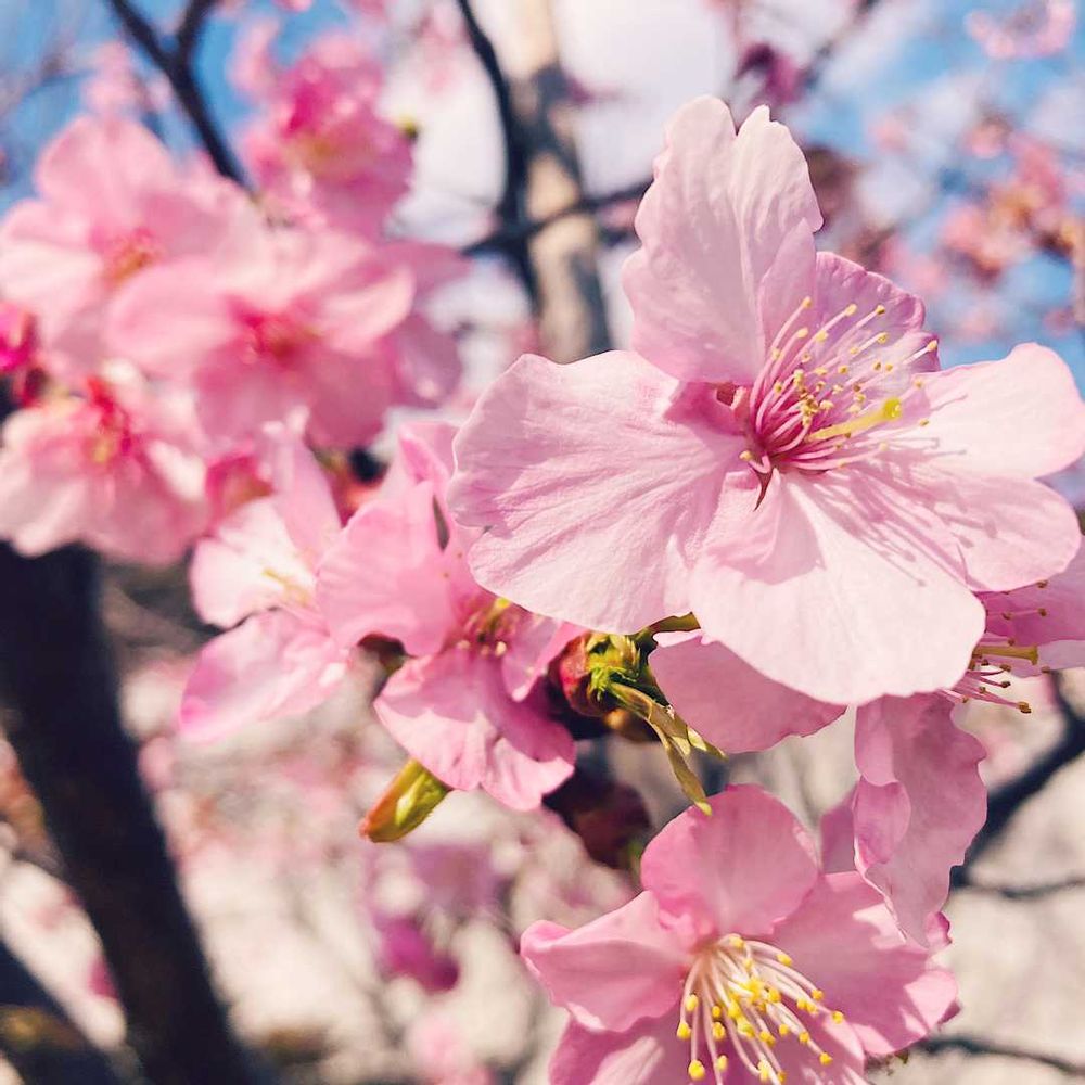 来月下旬頃に見頃を迎える染井吉野は、満開から1週間ほどで散ってしまう儚さがありますが、河津桜はゆっくりと咲き進み、1ヶ月間に亘って長く咲き続けるため、お花見時期もたっぷりと楽しめますね🚶♀️🎶
