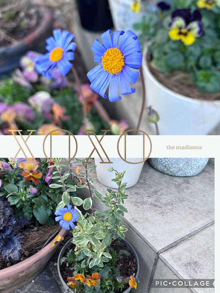①ブルーデイジーの可愛いこと💙くるんと後ろに丸くなった花びら。メダル🥇みたいに見えます🙄