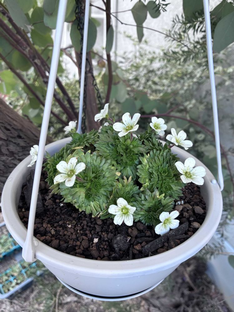 ②今年は白のクマモグサをハンギングにしてみました。このリッチェルのはお気に入りなんだけど、もうちょっとハンギング用の資材が色々あったらいいなぁ🙄🌼