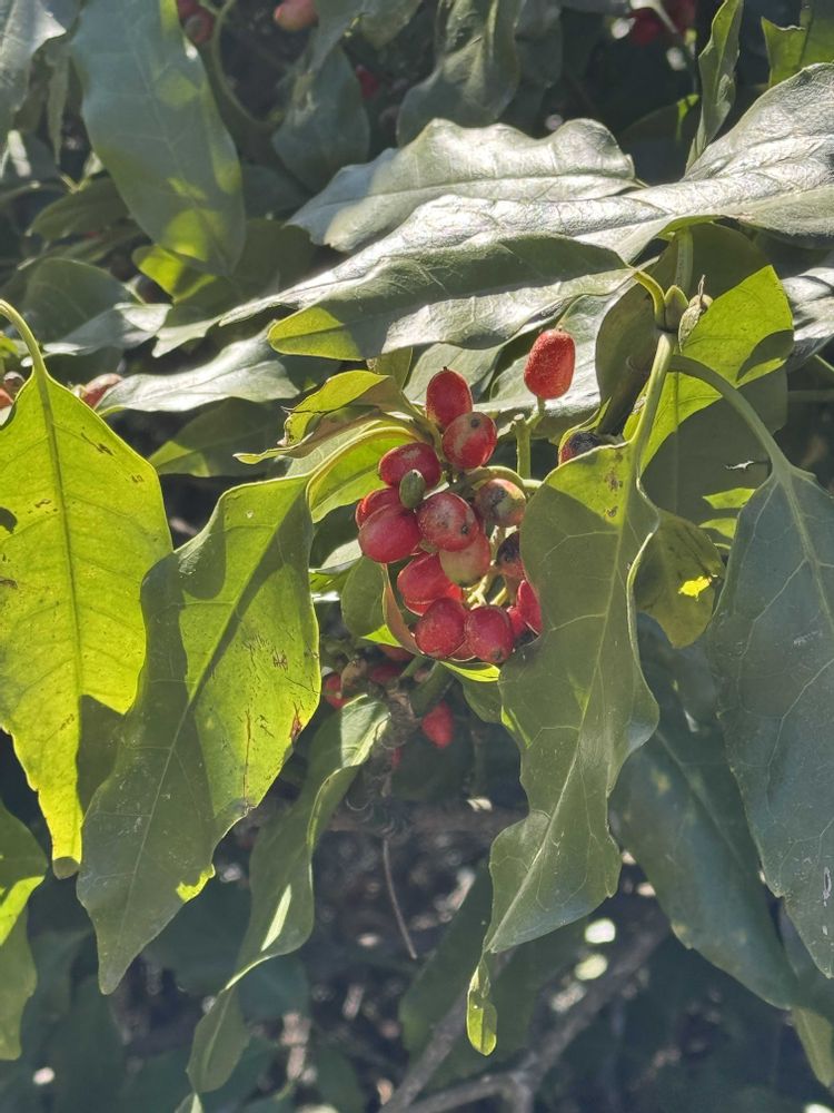 山の方では藪椿とあおきの実が色づいてます