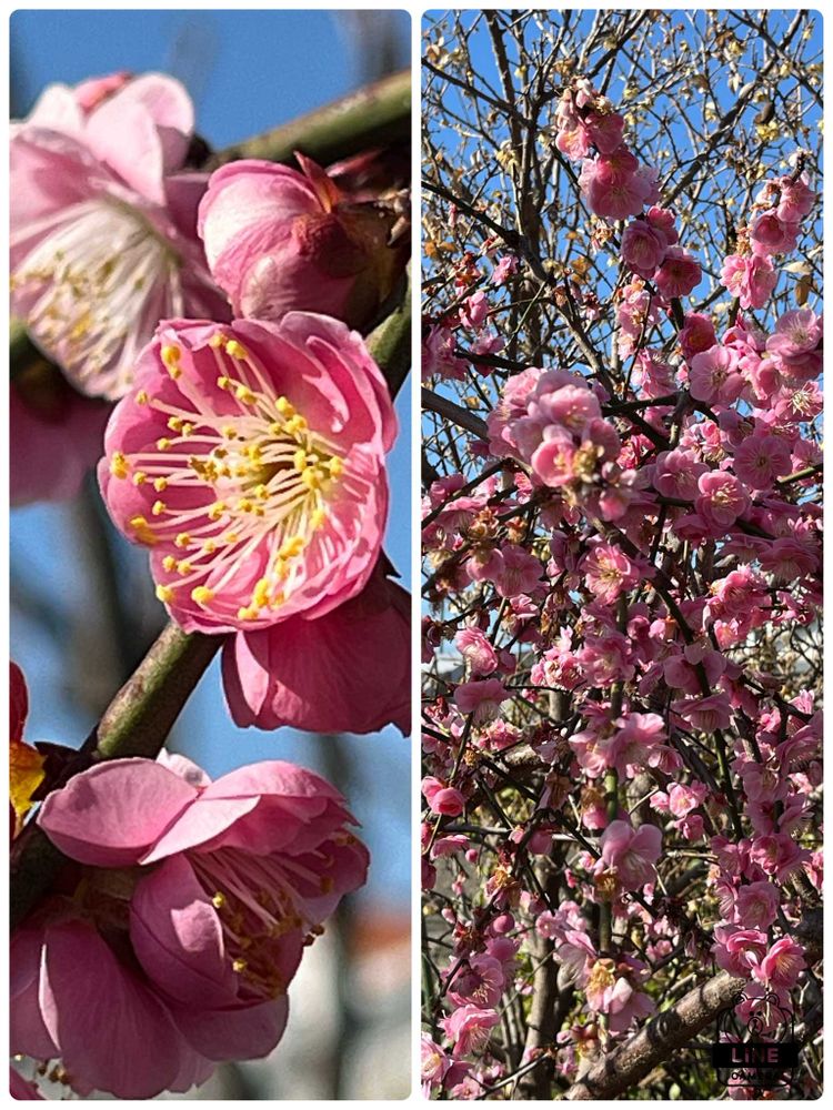 青空にはえるピンクの梅の花 とても良いですね〜👍