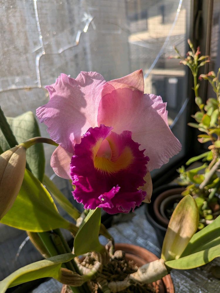 蘭の女王カトレアが咲き始めました。まだ甘い香りはしませんがこれから漂って来るはずです。しかし去年は5輪も咲いたので、これから他のシースからも蕾が上がって来るのでしょうか?そして沖縄には首里金城町の蘭通り(ダム通り)がありクロキに6~7株の蘭が着生しているそうですね!