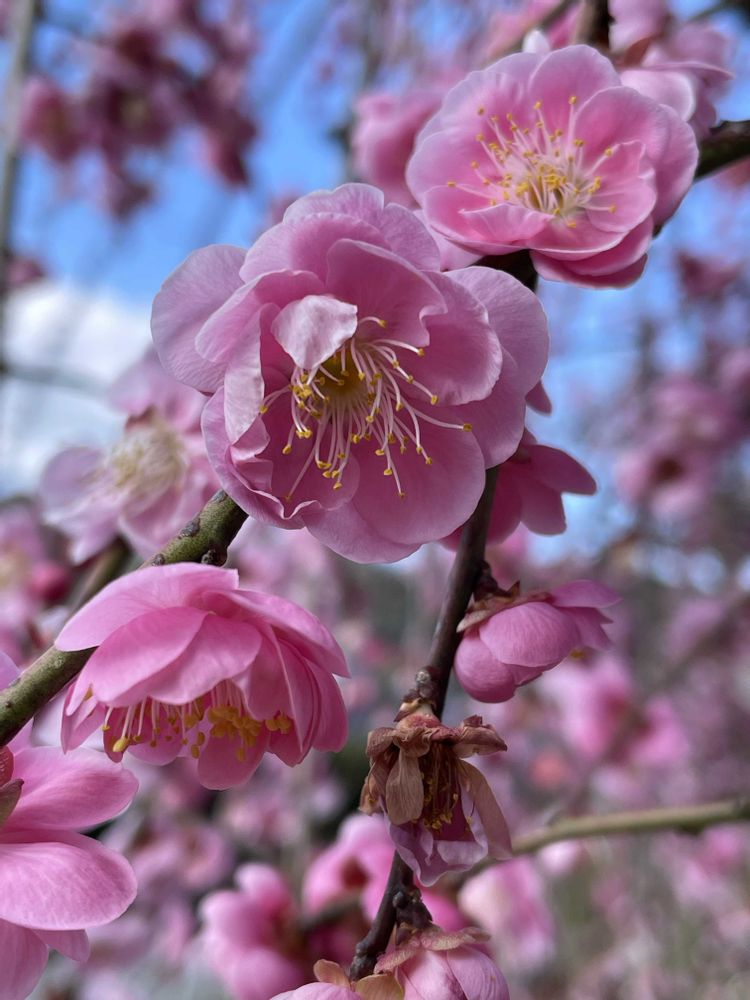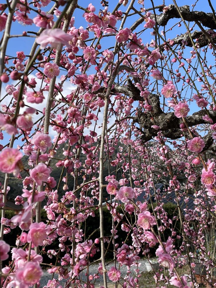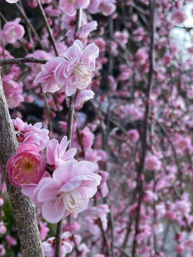 枝垂れ梅が見頃で、顔を近づけるといい香りです〜♪