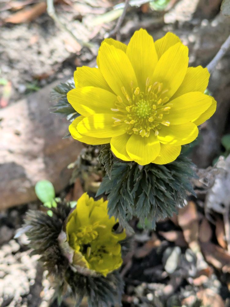 ①②我が家の庭にもやっとフクジュソウが咲き始めました☺️