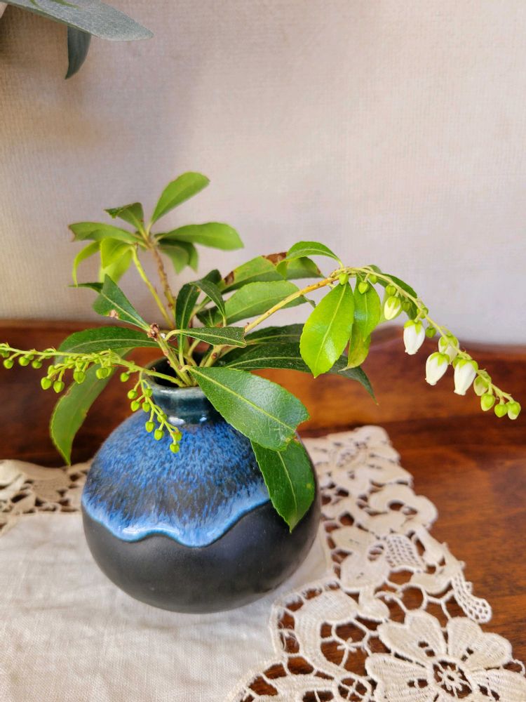 アセビの葉が、テーブルフラワーに使われるなんて驚きました🌿💐