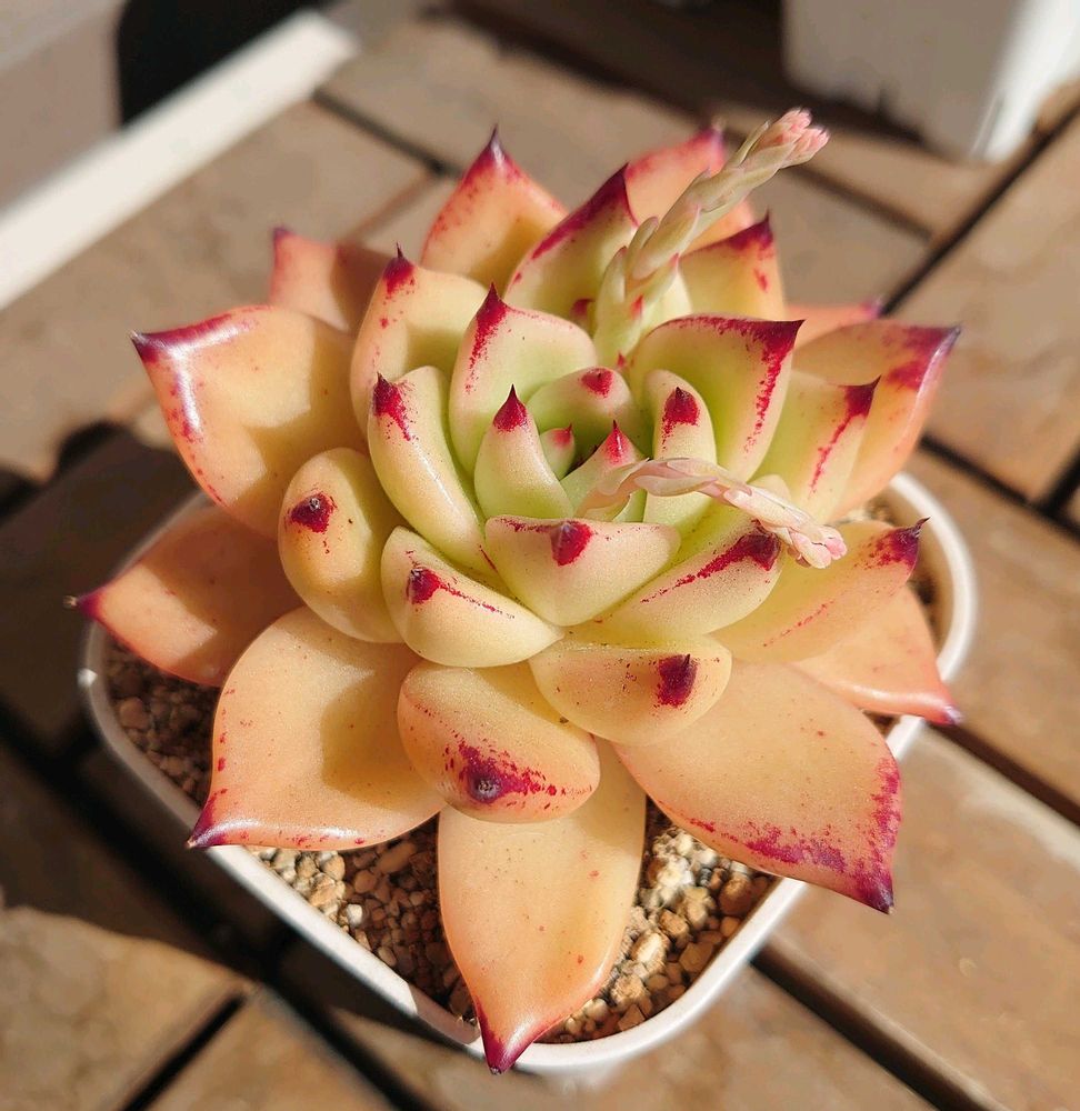 2025年4月にネットでたにたのさんの苗を購入した時におまけでついてきた名無しのエケベリアが面白く育っているので、成長記録を作りました。 この子の名前ご存知でしたら、ぜひ教えてください🙏