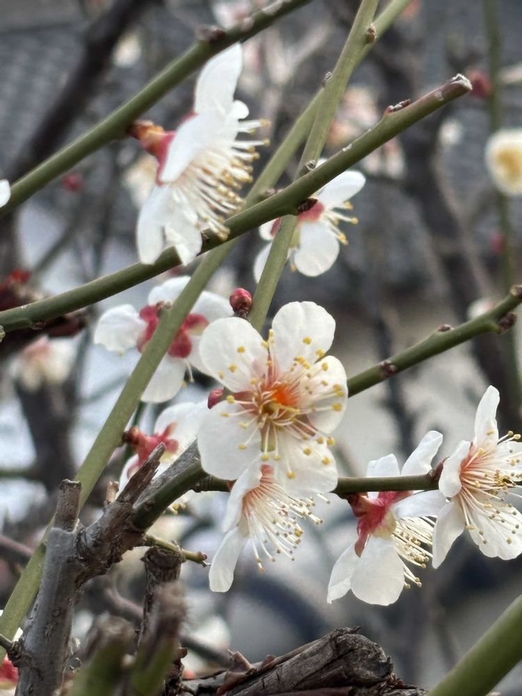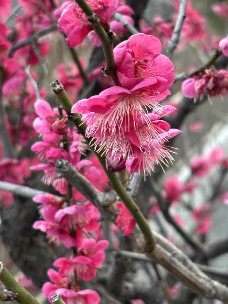 紅梅は満開、白梅は七分咲きです🌸