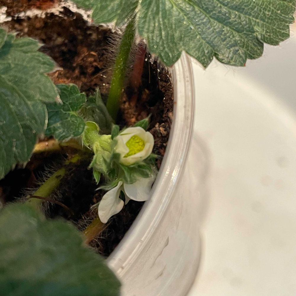 植替えようとしたら咲いていました💦かわいらしいけど、今回は切って植替えました。たくさん実がなりますように✨初詣に行ってそうお願いしようかな