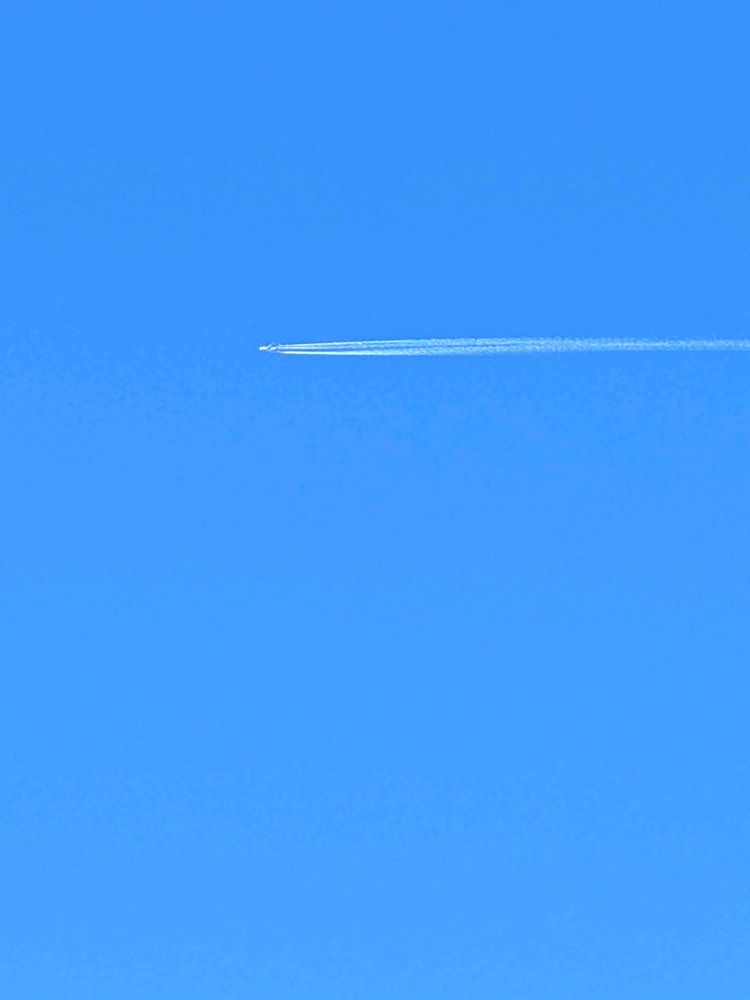 中腹から仰いだ空には飛行機が ✈