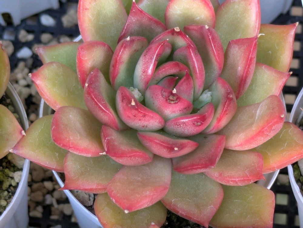 2025年4月にネットでたにたのさんの苗を購入した時におまけでついてきた名無しのエケベリアが面白く育っているので、成長記録を作りました。 この子の名前ご存知でしたら、ぜひ教えてください🙏