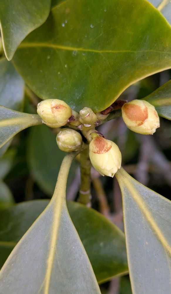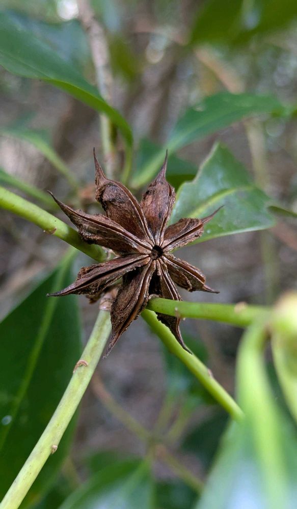 スターアニスと呼ばれる八角の実に似た殻が葉の間に引っかかっている🟤