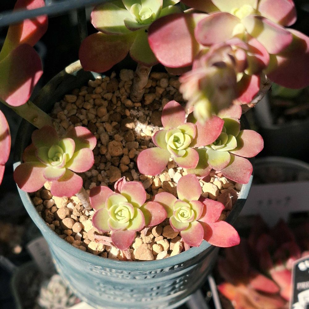 2025年4月にネットでたにたのさんの苗を購入した時におまけでついてきた名無しのエケベリアが面白く育っているので、成長記録を作りました。 この子の名前ご存知でしたら、ぜひ教えてください🙏