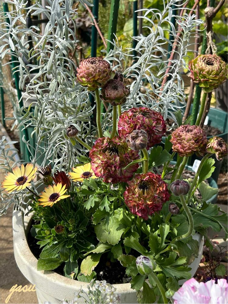こちら10号深鉢なので、ラナンキュラスの過湿が心配なのですが、オステオが少しは助けてくれるかなぁなんて楽観的に🤣