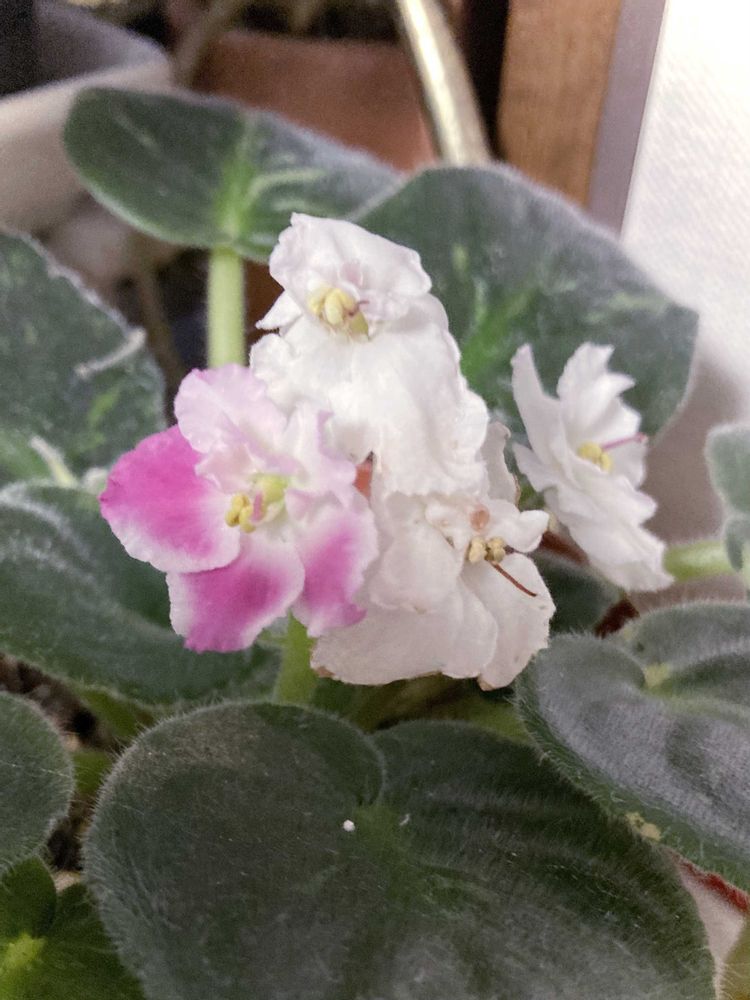 あらあら…白🤍のセントポーリアさんから、ピンクが入った花弁が…👀