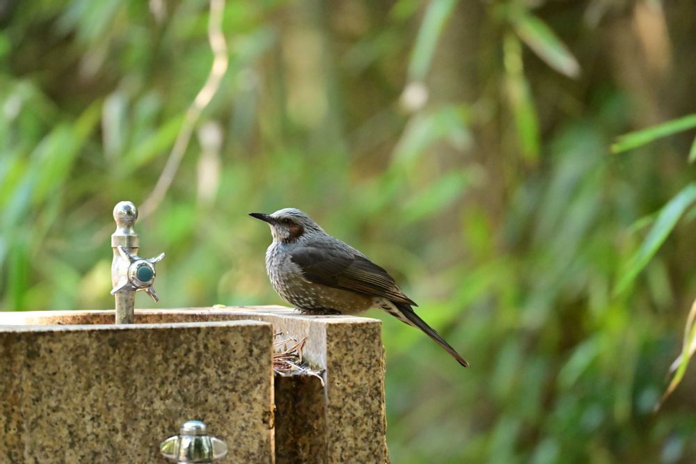 公園の水飲み場に、野鳥の置物があるのかとマジで思ったヒヨちゃん。