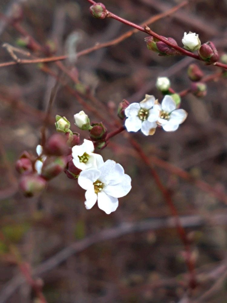 いつもの散歩道にユキヤナギが咲き始めてました💮