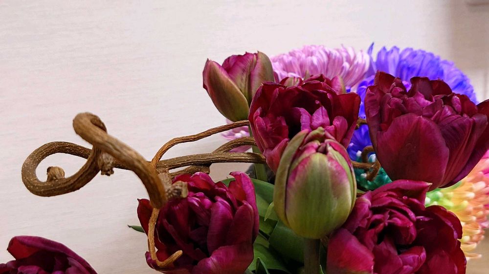 マム、チューリップとキウイです。