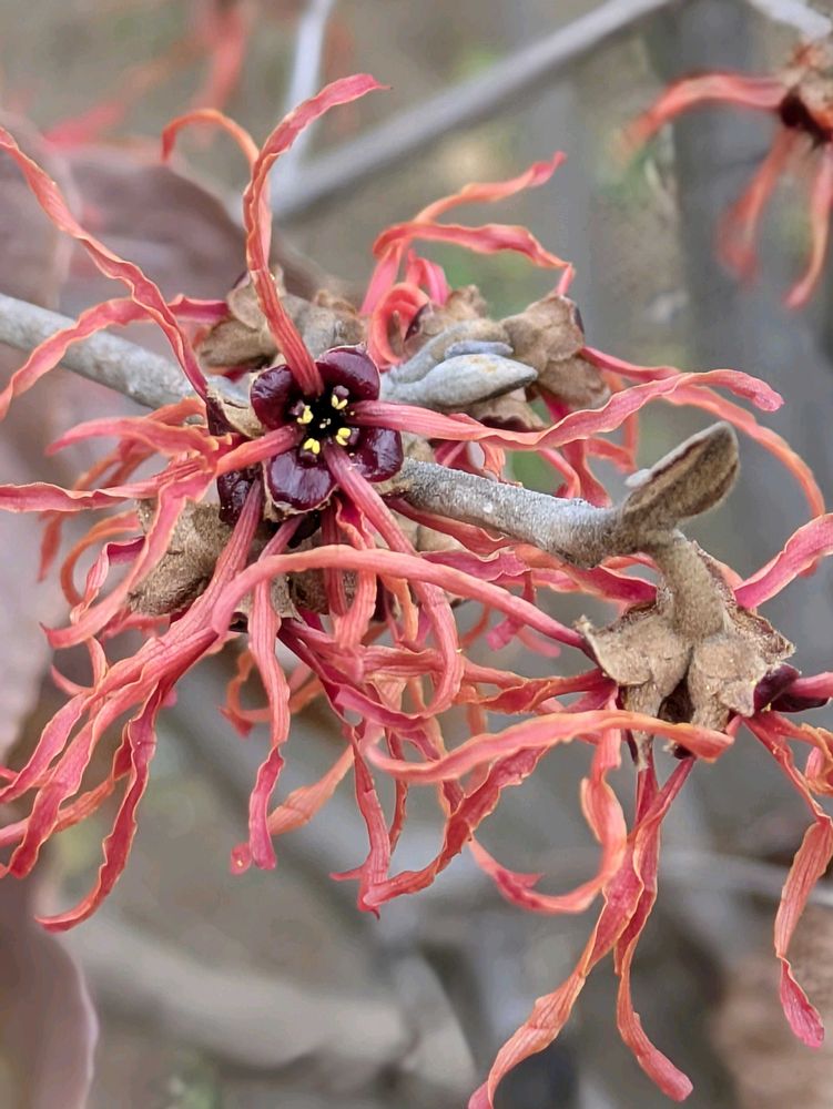マンサク、花弁の付け根は、こんな感じなのですね🤩ココもお花みたい♬