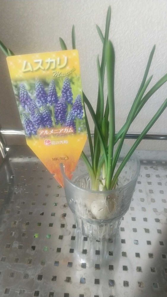 ムスカリの芽出し球根の水耕栽培は2回目です