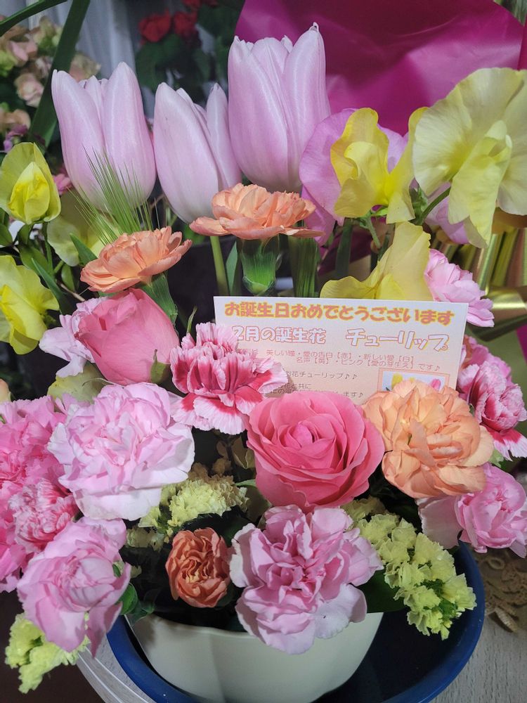 誕生日は皆んなからお花のプレゼント💐嬉しいです