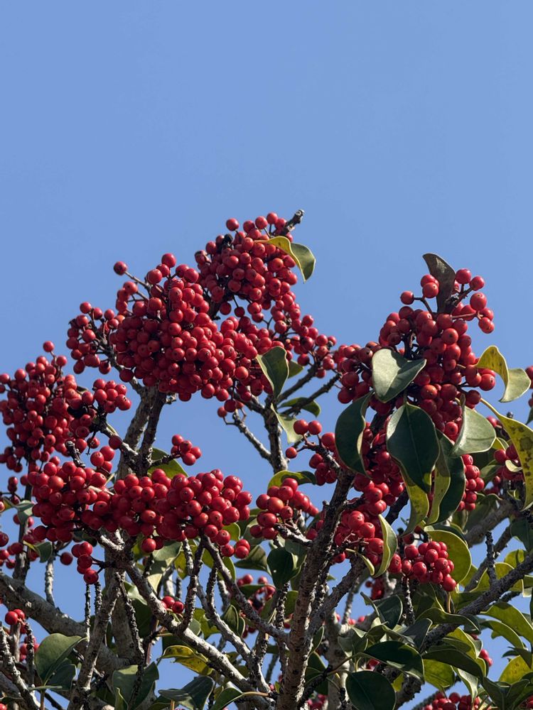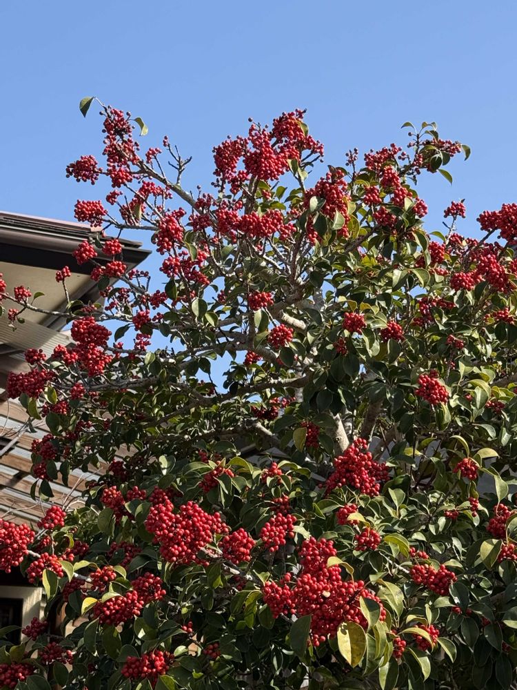 鈴なりの赤い実が空に映えて❣️
