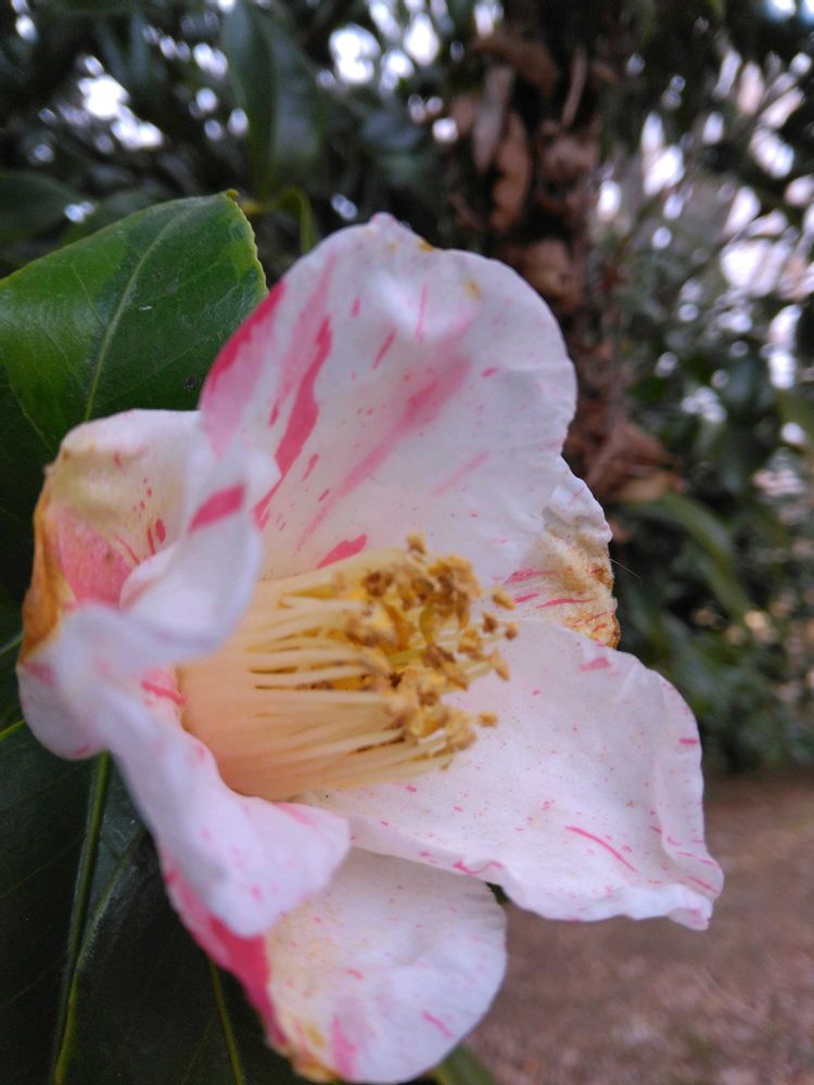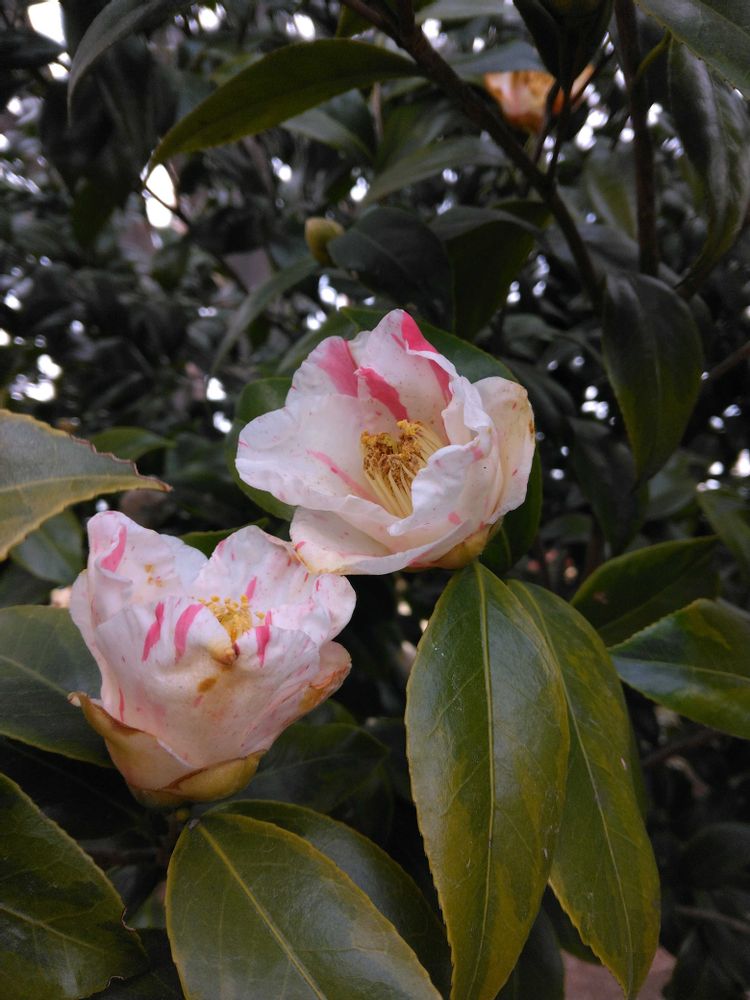 *椿の花を見つけました。今年は蕾も黄色く、ちょっと元気がありません。