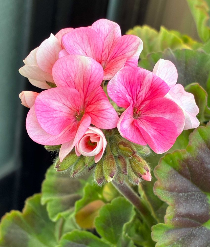 ゼラニウムさんは軒下室外機の上で、葉を紅くしながら開花してくれました♡♡