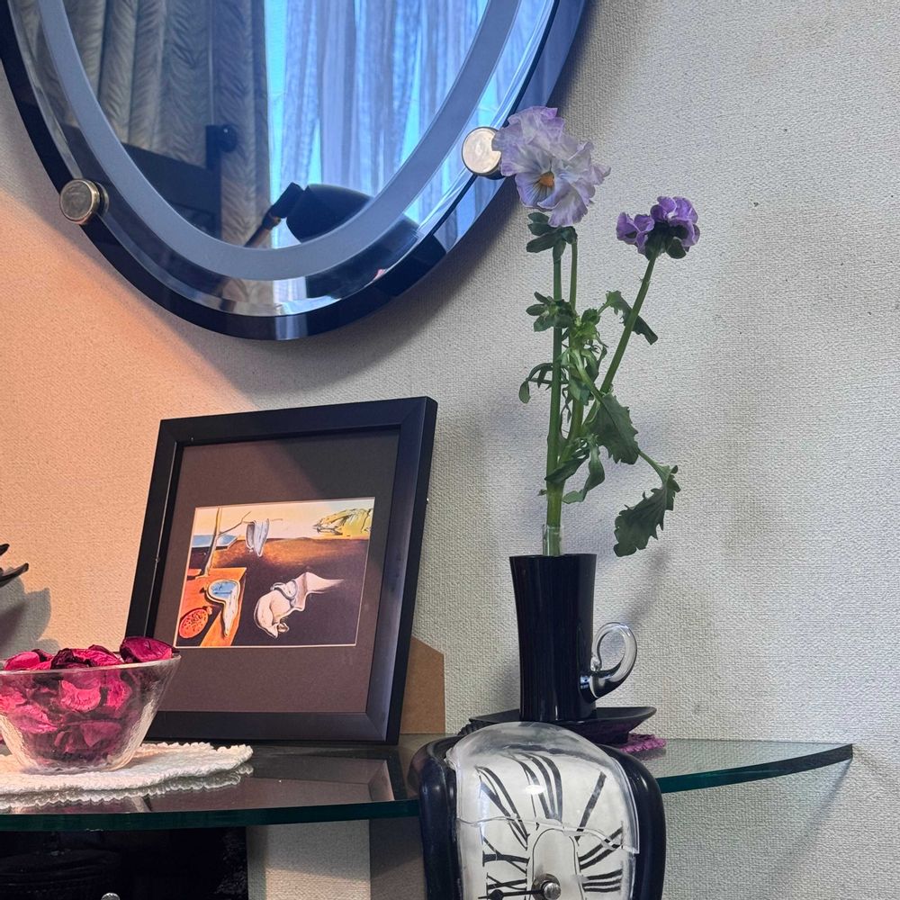 インテリア仏壇「鏡壇ミラリエ」「鏡壇ミロワ」に今日(2/21)の誕生花の「紫色のスミレ(菫)」 を飾ってみました。