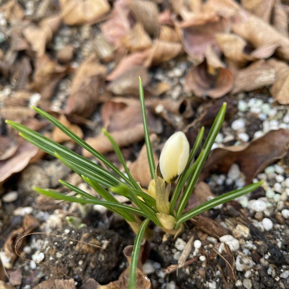 クロッカスの蕾が出てきました