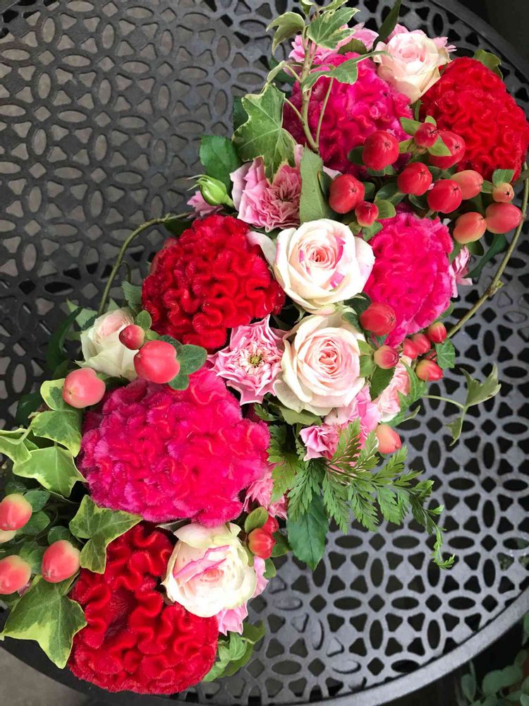 赤のケイトウが全体のアクセントになって可愛い~~⸜(* ॑꒳ ॑* )⸝⋆*