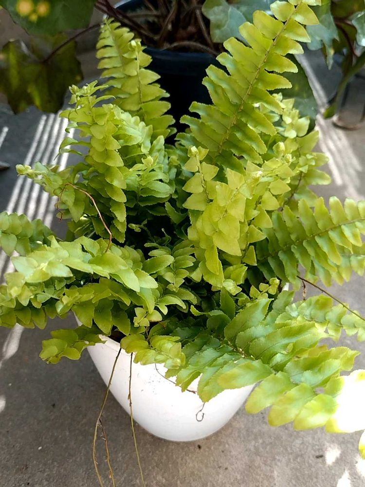 お天気が良いのでウォーキングがてら花屋へGO🌱店内グルグルぐるぐる楽しくまわって😆🌱3つほどお迎えしました😉🌱第一弾のシダ類ネフロレピス🌿キレイなグリーンに惹かれてチョイス😊🌱✨2枚目、根っこ付きのが飛び出ていたのでおチビちゃんを植え付けてみました💚可愛い😆🌱