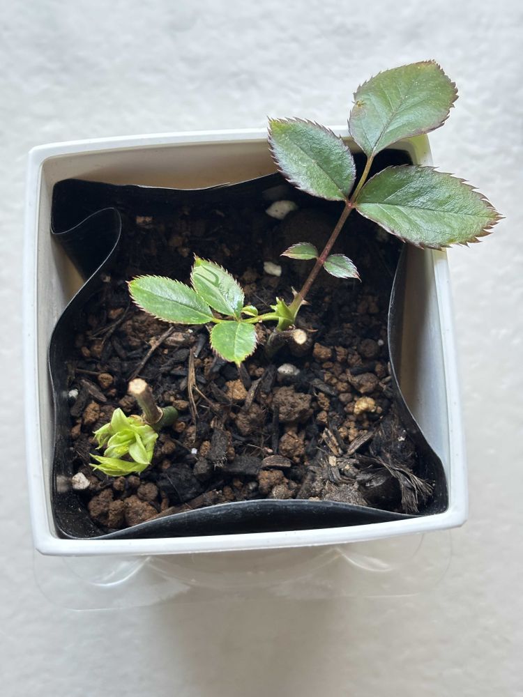 ②夏剪定時に挿木したバラ。