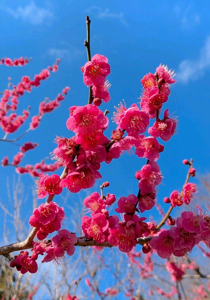 ・緋梅系(ひばいけい💬枝の中の髄が紅色をしている。多くは紅花だが、たとえ白花でも枝を折って赤い材なら緋梅系➡️寒紅梅、鹿児島紅、唐梅など)