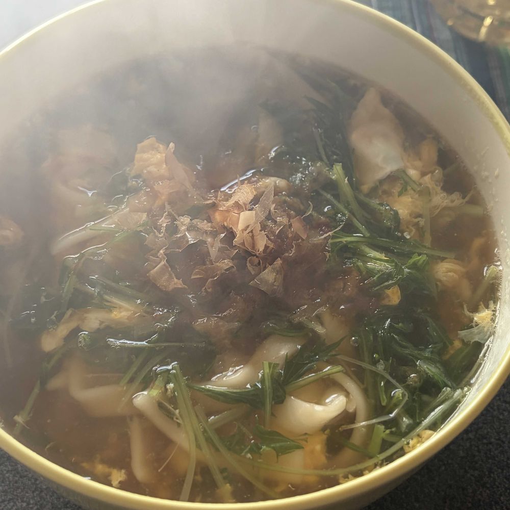 と、9月から室内栽培し続けていた水菜を本日、きしめんの具材にして食べました。