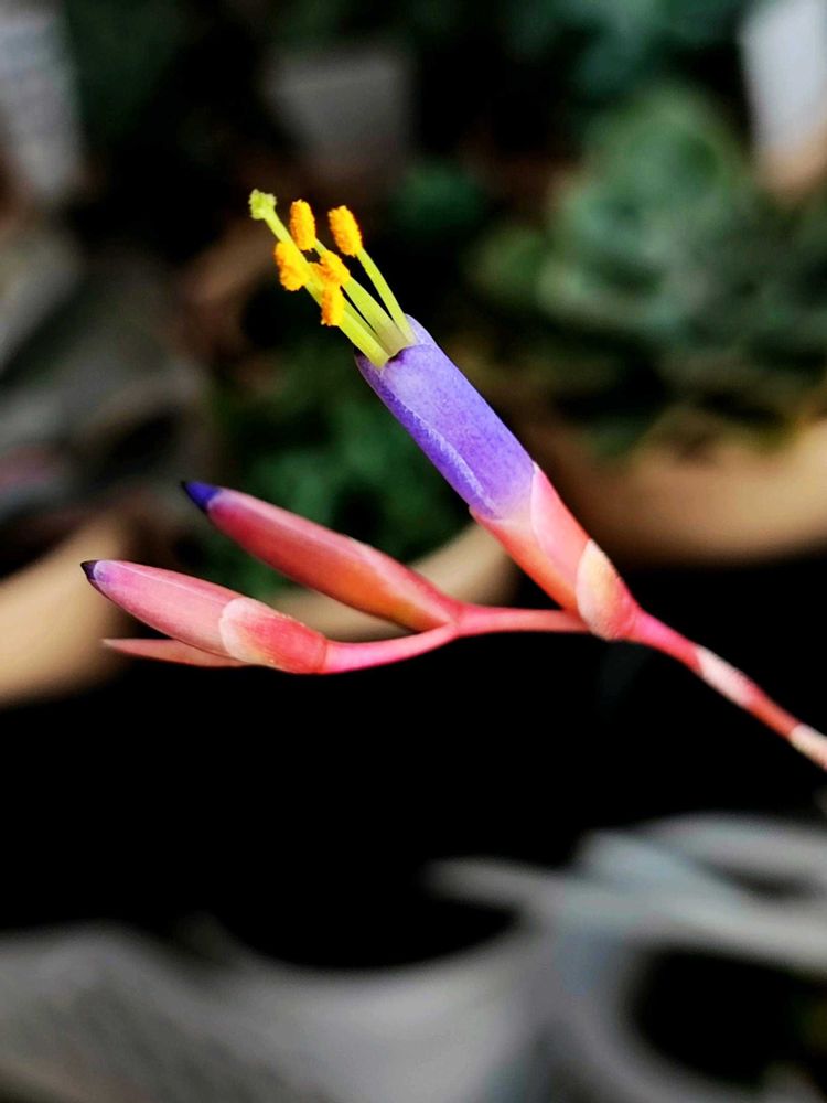 チランジア フックシー開花しました。この前のエピデンドラムもだったけど、そろそろ咲きそうって写真載せた次の日に咲くっていうね。私、別に運は良くないし、運動神経とかリズム感とかなくて鈍臭いのですが、やたらこういうタイミングはいいので、きっとタイミングの神様が今!って教えてくれてんのかな~と思ってます。