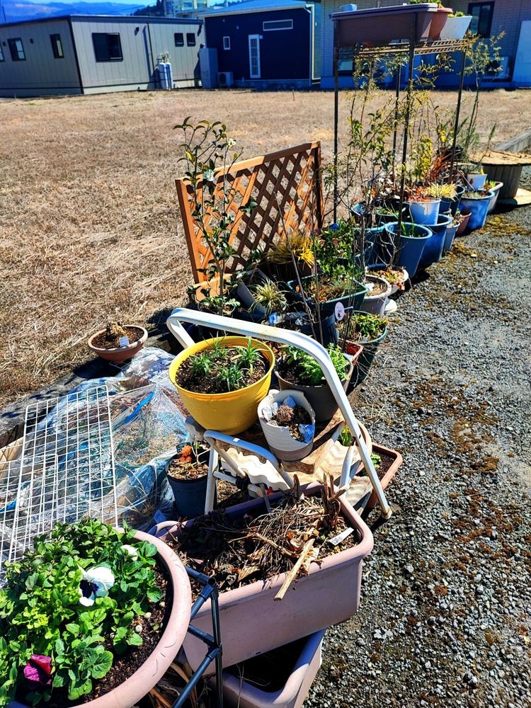 来週、庭の工事の準備で室外機の仮移設が入るので、ぼちぼち室外機まわりを片付けて、庭の鉢とかを隣の空き地(うちの土地)へ移動させました。室外機は最終的に向き変えてもらえるなら変えたいな…と思ってます。