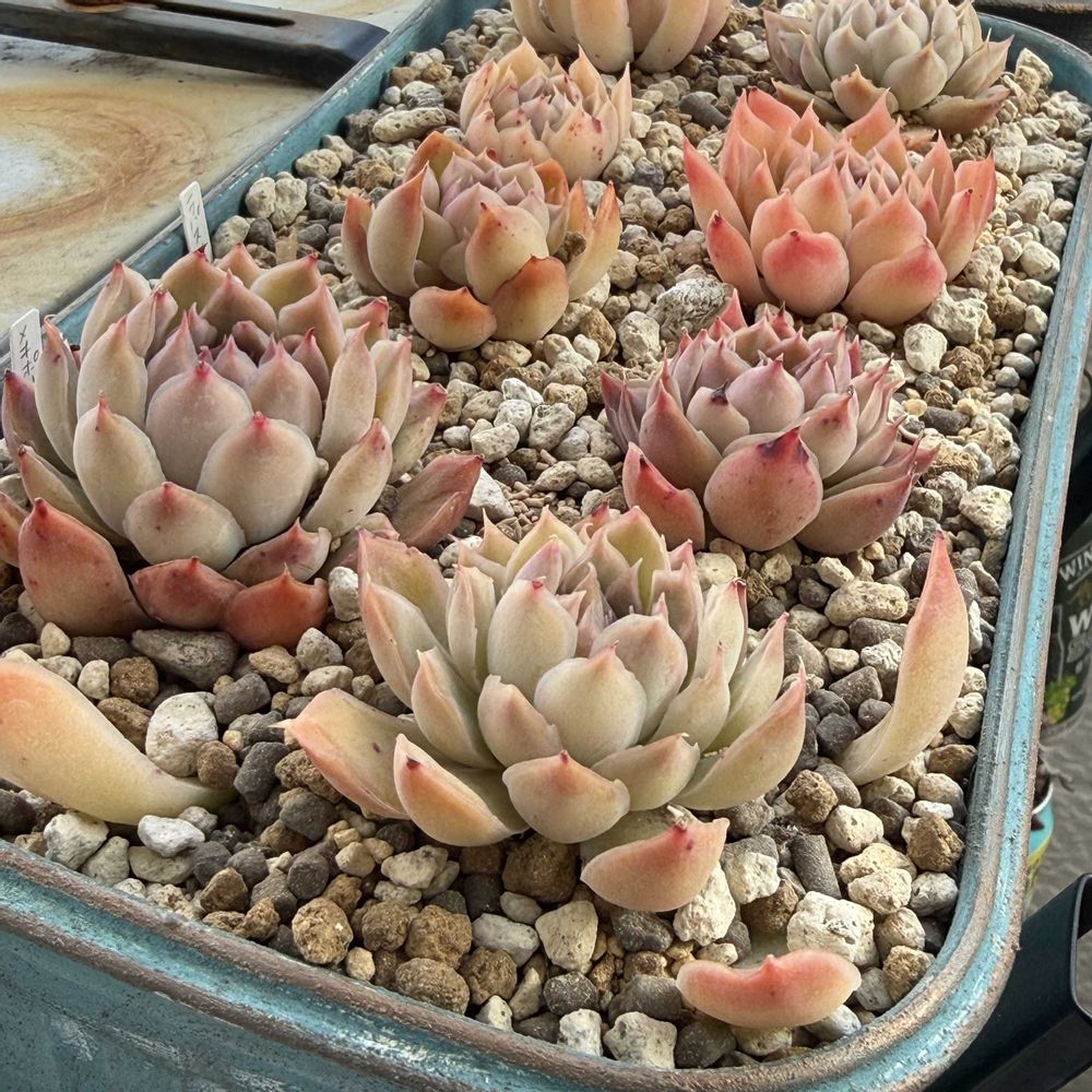 2025年4月にネットでたにたのさんの苗を購入した時におまけでついてきた名無しのエケベリアが面白く育っているので、成長記録を作りました。 この子の名前ご存知でしたら、ぜひ教えてください🙏