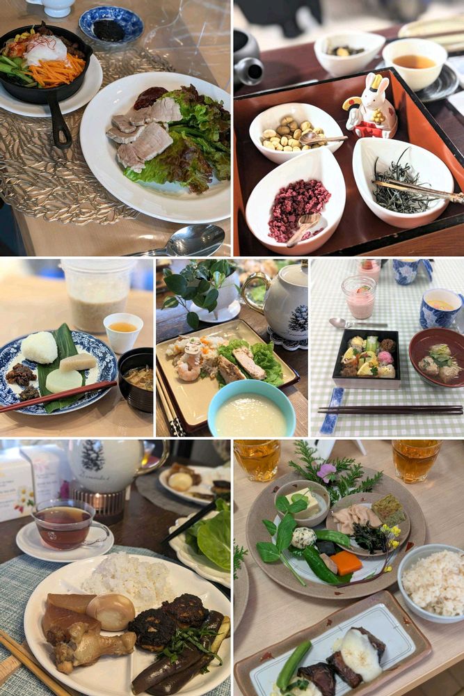 Googleフォトが「似ている写真や動画」と題してコラージュしてくれました🍀😊✨2022年〜2025年🧑🍳自家製のお花💛コウサイタイ~♬㊨㊦日本茶の講座🍵( ^^) _旦~~㊨㊤お友達の🏠ランチ𓌉◯𓇋 デザート𝑐𝑜𝑜𝑘𝑖𝑛𝑔 𓎩お料理教室ψ(´ڡ`♡) オイシー♪
