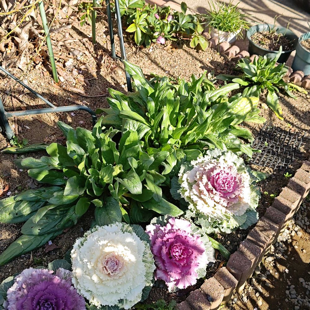 この後、立派な葉牡丹タワーになるんでしょうね。こんな大きな葉牡丹は初めてなのでトウ立ちも楽しみです😍