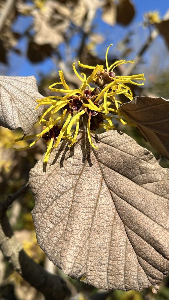 シナマンサク、昔何も知らない時に「マンサク」です、と投稿したら1枚葉が絡んでて、葉っぱがあるのはシナマンサク!と教えて頂いたんです。有難いですね!そういうこは覚えてられます☺️