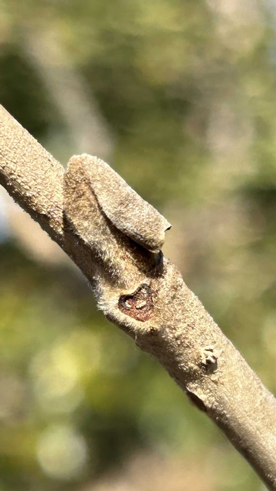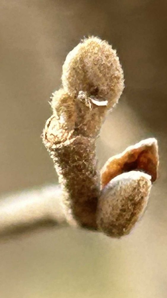 マンサクの冬芽葉痕、小さな穴から顔覗かせて可愛いですよね🤗