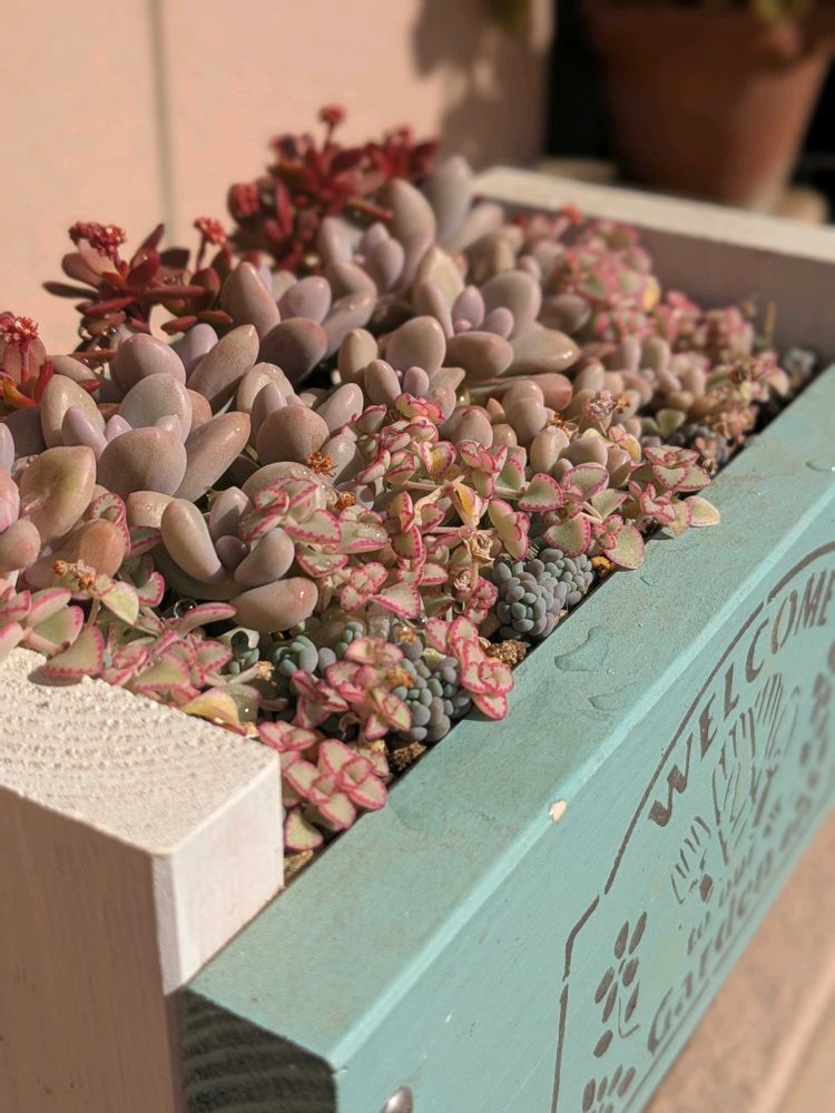 多肉棚の最上段にある寄せ植え
