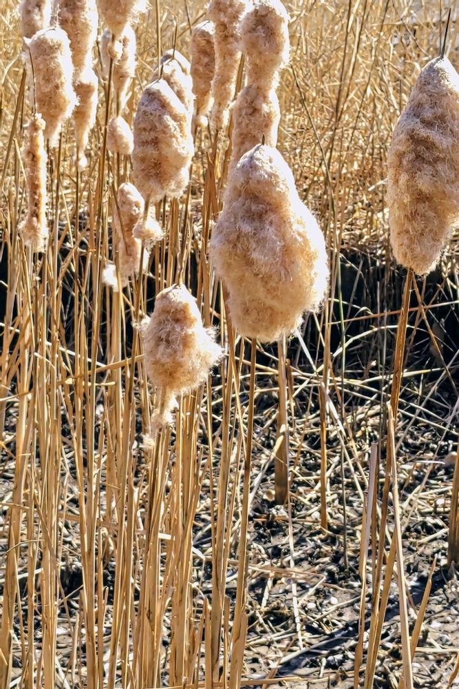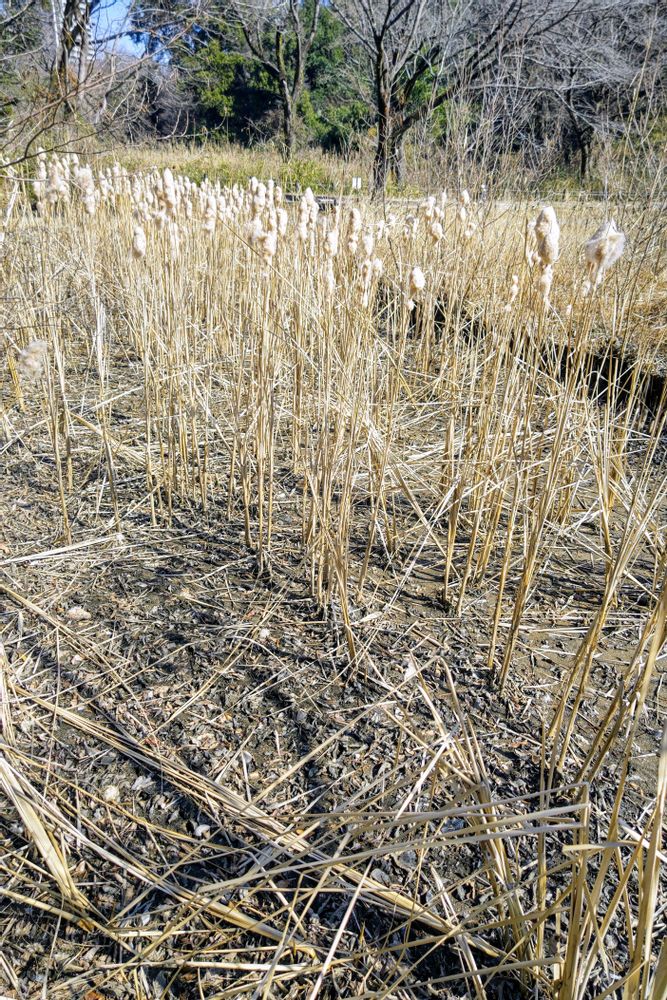 近所にガマの穂があり、その後が気になり、年明け見に行ったら、弾け途中のものから、ほぼ弾けちゃったのもありました