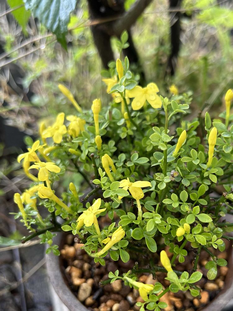 昨年春にご近所さんから頂いた桜の鉢植え。キレイに設えてあるステキな鉢です 初めての冬越しにドキドキ。 (サトザクラと聞いていましたが、河津桜のようです🌸)