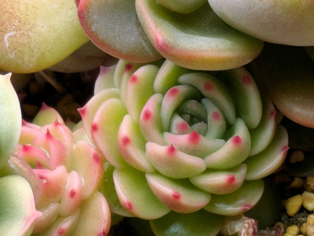 2025年4月にネットでたにたのさんの苗を購入した時におまけでついてきた名無しのエケベリアが面白く育っているので、成長記録を作りました。 この子の名前ご存知でしたら、ぜひ教えてください🙏