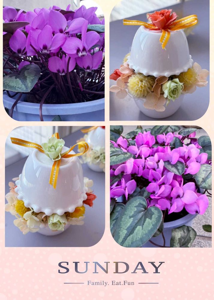 ⑤先日アレンジ教室で作ったものと原種シクラメンコウム
